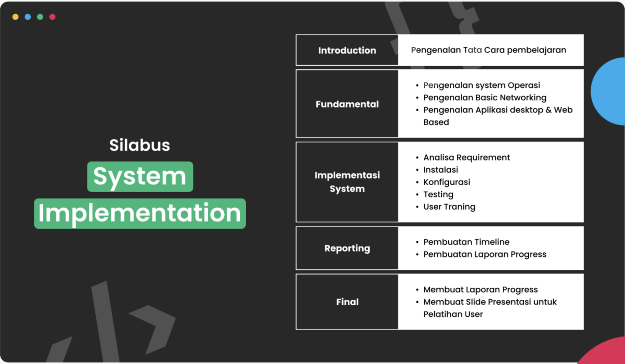 Bimbingan langsung oleh mentor professional & berpengalaman